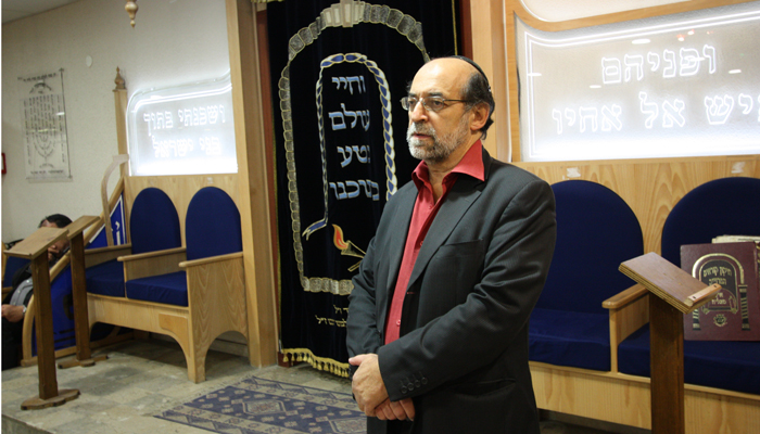 Albert Myara dans la synagogue écoute le sermon d’un rabbin. / Crédits : Robin D'Angelo