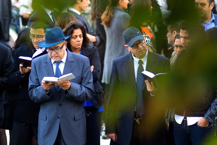 Paris 19e. Costume noir, baskets Nike noires et casquette blanche, un jeune homme patiente au dessus de l’écluse qui sépare le canal Saint-Martin du bassin de la Villette. Devant le jeune juif de 18 ans, des dizaines de coreligionnaires défilent en direction du bassin de la Villette. On lui demande ce que tout le monde fait là :