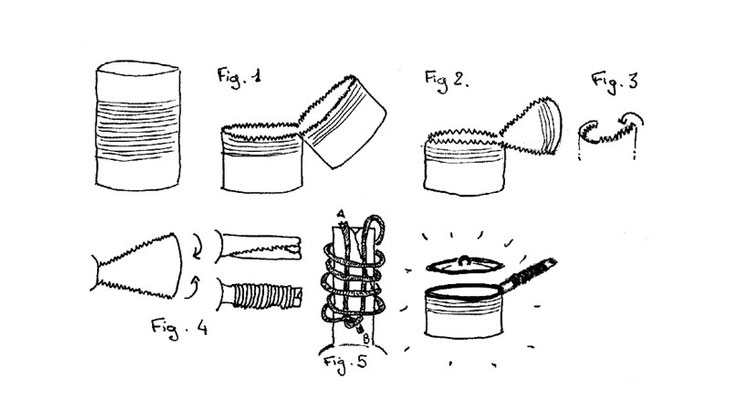 Pour cuire ses aliments, il s’est aussi bricolé « une chauffe », comme on les faisait déjà au 19e siècle. « On prend un tube de mayonnaise en métal que l’on coupe aux extrémités et qu’on aplatit. A l’un des bouts du tube, on incise et on recourbe une extrémité pour faire une sorte de pied. A l’autre bout, on enfile un mouchoir en papier plié et on pose ça debout dans le cul d’une canette de coca où l’on ajoute de l’huile qui remonte le long du mouchoir. » Il ne reste qu’à mettre le feu et à faire un trépied avec des canettes remplies d’eau pour poser la casserole dessus.