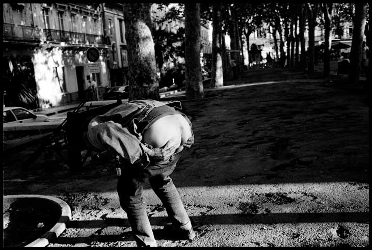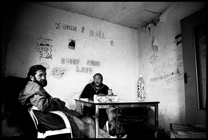 « Passage du Dauphin », une galerie marchande en centre-ville de Sète. Jocelyn est assis par terre. La tête ronde, une barbe de 3 jours, les yeux marrons et quelques tâches de rousseurs, il porte un pull élimé et un vieux blouson de toile kaki. Il fait la manche. Appareil photo visible, je m’approche de lui et balance quelques pièces dans une casquette retournée. Une opportunité pour engager la conversation : « Je fais des photos des personnes qui vivent dans la rue. Tu serais d’accord ? » Il accepte. Ces premières images, je ne les garderai pas. Des photos banales d’un mendiant. Montrer ce que tout le monde voit n’a pas d’intérêt. Mais pendant plusieurs mois, je passe et repasse dans la rue et Jocelyn me présente ses amis comme Michel, Slawek, Roseau ou Stéphane. Puis Matthieu me fait entrer dans un premier squat au bout de 5 mois.