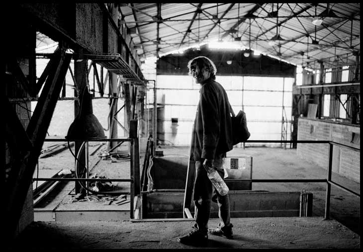 On saute la grille qui barre l’entrée d’une usine de pièces automobiles désaffectée. Matthieu vit ici. Le squat a des airs de cathédrale de ferraille. Les machines ont été emportées, les escaliers sont rouillés. Dans une pièce transformée en chambre, il y a un matelas récupéré et des habits bien pliés sur une planche de bois. En guise de table, une planche et deux caisses sur laquelle se trouvent une petite radio et des objets de déco. Deux Polonais arrivent, barre à mine sur l’épaule et pince monseigneur bien en main. Manifestement à la recherche de cuivre, ils se mettent en travers de la porte et matent mon appareil photo. Matthieu jappe à mon attention « Faut y aller ! » Quand je passe devant eux, les pollacks gueulent et me fixent dans les yeux, histoire de me faire comprendre que j’ai de la chance. Il y a aussi des gros cons dans la rue.