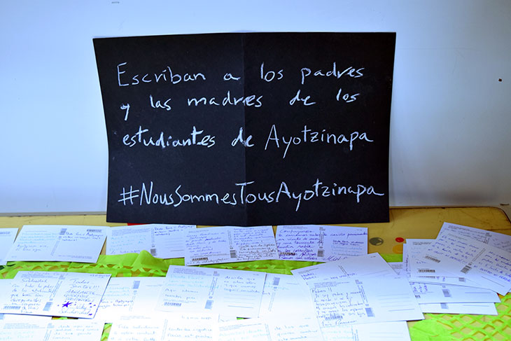 « Nous souhaitons simplement rencontrer nos camarades de lutte qui nous soutiennent depuis le début et faire passer notre message : ce ne sont pas 43 étudiants qui ont disparus, ce n’est pas un problème local, c’est un problème de société. »