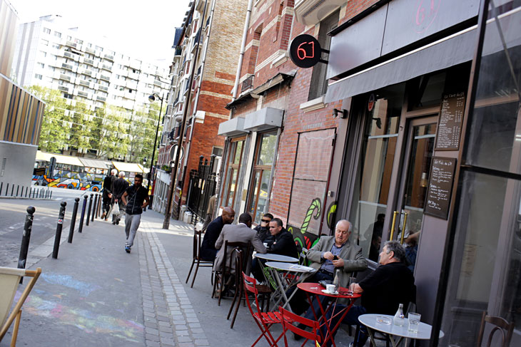 Verres de vin blanc et demis au comptoir, le 61 reste un repère… masculin. Clopes, clopes et clopes. Les jours d’événement, la testostérone monte au mètre carré. Les chèches bleus sortis du désert côtoient les blousons de cuir et les vestes à poches beiges. Les gueules mal rasées et les rides sur des peaux parcheminées se font face. Remy Ourdan rencontre pour la première fois Patrice Franceschi, écrivain présent pour un événement, alors qu’ils travaillent sur des sujets proches depuis des années. Poignée de main ferme.