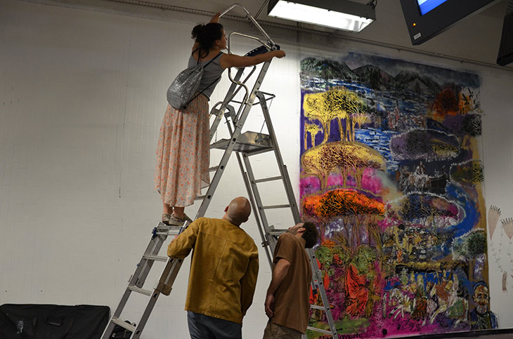 « Jonas a eu son numéro et l’a appelée au culot. Elle connaît bien le monde du street art. Avec le noyau dur collectif on a passé l’après-midi sur sa terrasse à discuter avec elle de manière informelle. Elle nous a aidé à sélectionner les artistes. Puis elle nous a donné des numéros. »