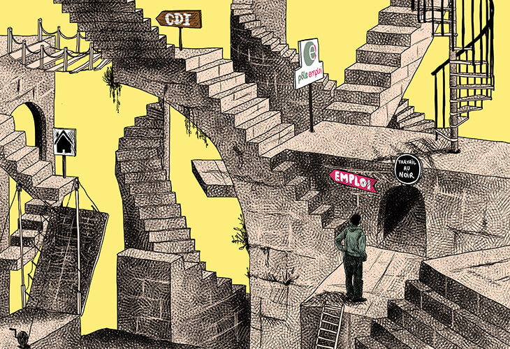 En janvier 2014, le marché du travail français s’ouvre aux Roumains et aux Bulgares. Ana, une bénévole de Share, une asso du quartier de République, coache alors Aurel pour une opération recherche d’emploi acharnée : il crée son compte sur Pôle Emploi, ouvre une boîte mail et se met à appeler les entreprises de transport et de livraison. Il dépose son CV dans les supermarchés et décide même de participer à un Forum pour l’emploi, en espérant que « ça va donner quelque chose et qu’on va m’appeler… »