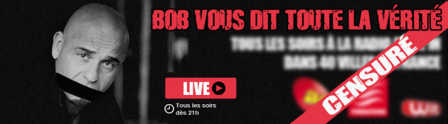 Mais Bob n’a pas dit son dernier mot. Il met en scène son départ de la bande FM avec pertes et fracas. Dans la foulée de sa non-reconduction, il publie sur Facebook un communiqué vengeur où il s’estime victime de la main du « pouvoir » et de « la censure [qui] a eu raison de la vérité. » Il agrémente le tout d’un photomontage à son effigie, avec un bâillon sur la bouche, et évoque « des menaces de mort ». Son numéro de martyr de la liberté d’expression connait son petit succès. « Il y avait 50 personnes pour me soutenir devant les locaux de la station pour la dernière », affirme-t-il. Il lui vient ainsi l’idée de lancer un appel aux dons à sa communauté de fans pour continuer l’émission sur Internet. Il obtient 10.000 euros de leur part, en virement Paypal.
