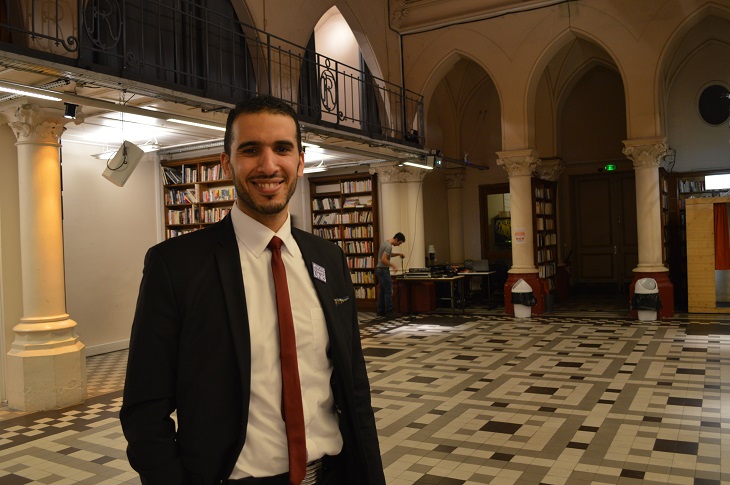 Yasser Laouti et sourire bright dans le Hall de l'Archipel (8e) / Crédits : Matthieu Bidan