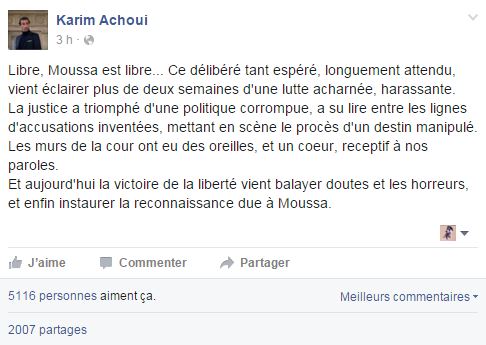 Karim Achoui annonce sur Facebook la libération de Moussa /