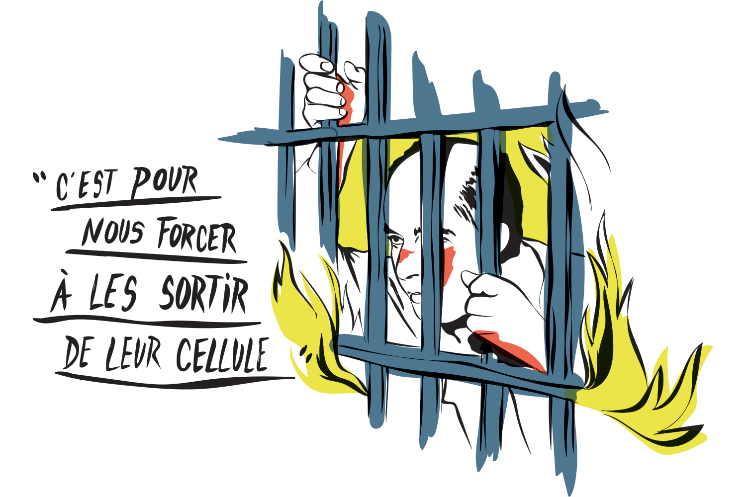 « Je ne leur laissais pas le temps de souffler avec le sport, les cours d’arabe et de religion, la pression du groupe. Il y a en plus les embrouilles avec les surveillants et l’ambiance pesante de la prison. Tu les épuises les types. »