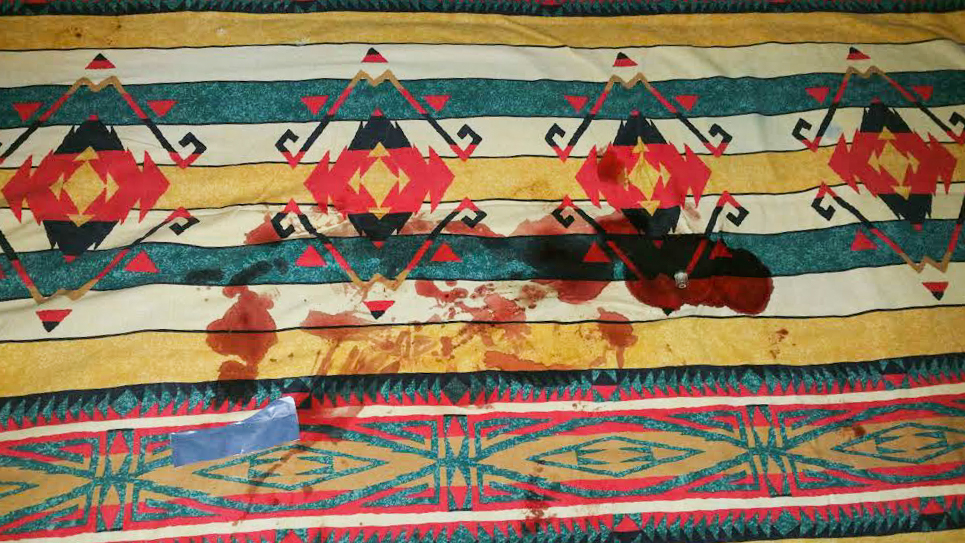 Une couette recouverte de sang. / Crédits : Robin D'Angelo