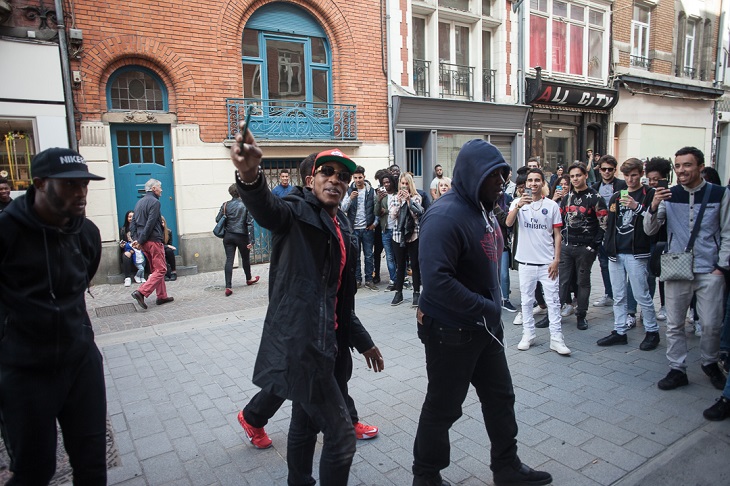 Centre-ville de Lille – Le cérémonial est précis. Deux Mercedes barrent une petite rue commerçante. Cinq lascars sortent des berlines, sweat Charo sur le dos, grillz, regard froid, visage fermé. Devant la boutique Foot Korner, Alassan, un grand golgoth, éducateur et coach de grappling, complète le dispositif de sécurité. Devant lui, des dizaines de fans ont formé une file et dégainé leur portable, branchés sur Snapchat. La star du jour, le rappeur Niska, peut se montrer. Avec la sortie de son dernier album, il enchaîne les dédicaces dans les magasins Foot Korner aux quatre coins de la France : Metz, Toulouse, Avignon, Grenoble et aujourd’hui à Lille. « Ici, je suis comme chez moi, c’est la famille », explique le rappeur qui accompagne Maître Gims sur le tube Sapé comme jamais.