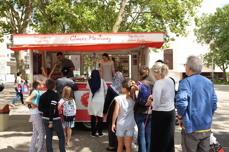 Montreuil (93) – En face de la mairie de Montreuil, par une après-midi ensoleillée de juillet, Franck se régale d’une glace deux boules pistache-noisette de Chez Martinez. « Ce glacier, c’est une institution ici », clame le jardinier de 55 ans :