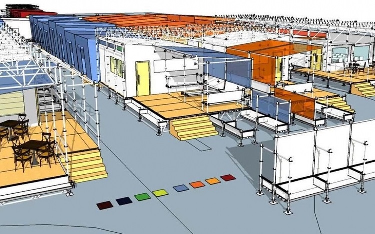 Le site n’est disponible que pour 18 mois. Il fallait que tout soit démontable. On a utilisé beaucoup de matériaux réutilisables, faciles à transporter, comme les échafaudages, des éléments en bois. C’était une commande de la mairie de Paris et d’Emmaüs Solidarité, l’association qui va gérer le site. Il fallait que l’on puisse déménager les différents éléments du camp au terme de cette période.