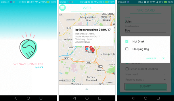 Du coup, ils font une application pour rendre les maraudes plus efficaces, grâce à une carte qui géolocalise les SDF, avec une mise à jour de leurs besoins. En gros, il s’agit pour les associations et les pouvoirs publics d’avoir une trace des actions en cours ou passées auprès des sans-abris. Les particuliers eux, peuvent signaler les SDF. Le tout avec trois interfaces différenciées.