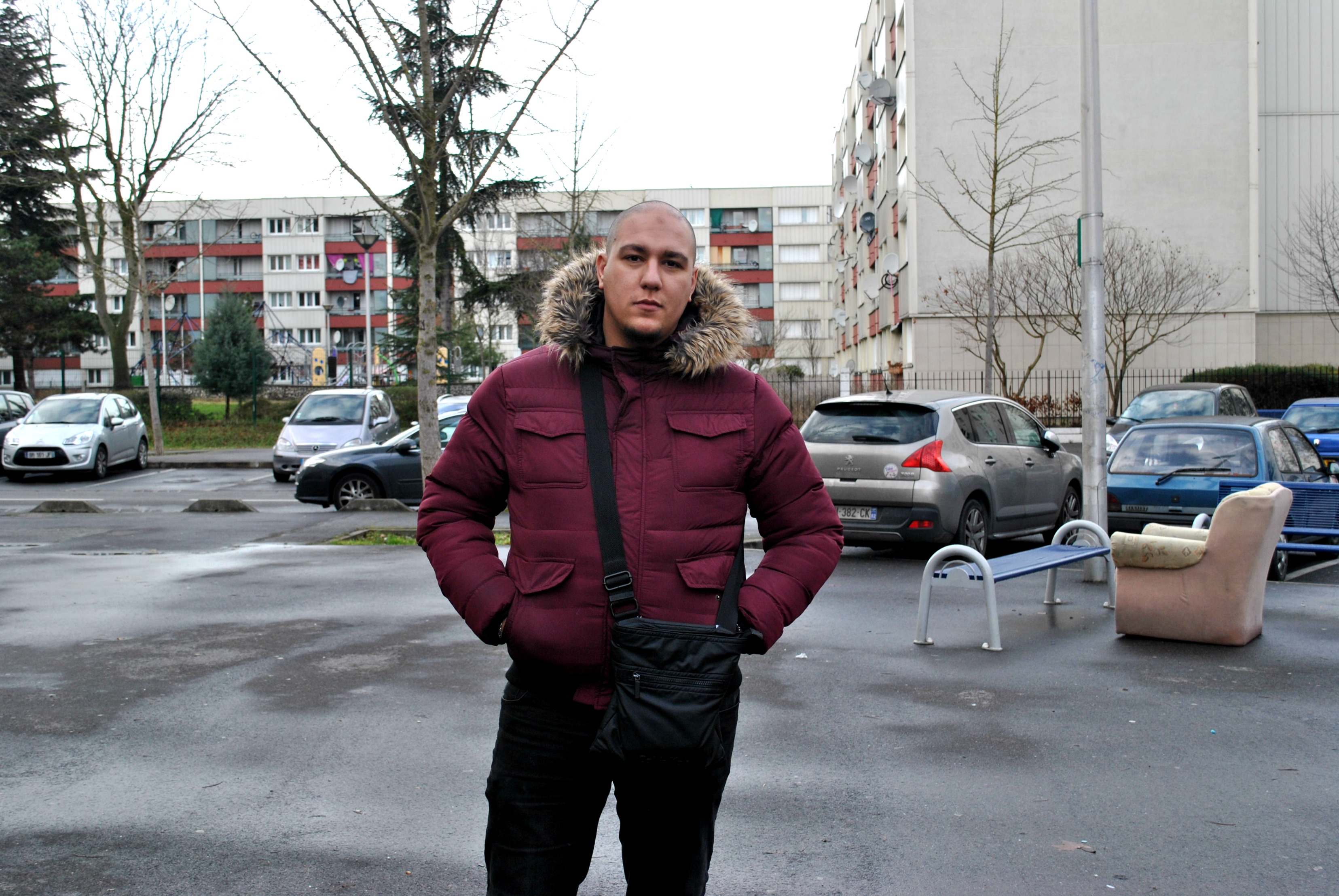 « Quand je vois passer une voiture de flics, je ne la regarde pas. Je fais ce qu’il faut pour éviter leur regard. Si tu les regardes, ils s’arrêtent. Tu peux te retrouver au commissariat pour rien. » D’après Slimane, emmitouflé jusqu’au nez dans son col de manteau, il suffit d’être posé en bas d’une tour pour se faire contrôler. Rares sont les fois où il a oublié ses papiers chez lui. « Les contrôles, ça peut être 3 à 4 fois par semaine. » Et c’est d’autant plus vrai depuis qu’il a terminé son contrat comme agent de sûreté à Roissy. Alors le matin, il se lève et cherche du travail. Il fait toutes les démarches qu’il faut au Pôle emploi. « Et l’après-midi, qu’est-ce qu’il se passe ? Je dois rester chez moi ? » Le jeune homme de 24 ans descend de son appart’ et voit des copains. Mais fouler le bitume des 3000 signifie aussi croiser davantage la police :
