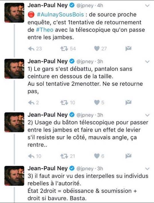 Très partisan de la thèse selon laquelle le viol de Théo par un policier ne serait qu’un accident (il a même créé le hashtag #AccidentPASviol), il appuie ses propos avec un syllogisme bien senti.