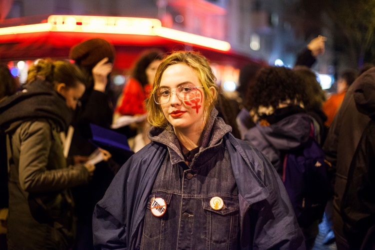 « Je suis venue aujourd’hui en partie pour le climat très particulier qui règne : Trump, Le Pen… c’est la montée en puissance du sexisme. Je me suis toujours sentie concernée. On ne devrait plus avoir à manifester pour ses droits là en 2017. Mais c’est un combat de tous les instants auquel il ne faut pas renoncer. »