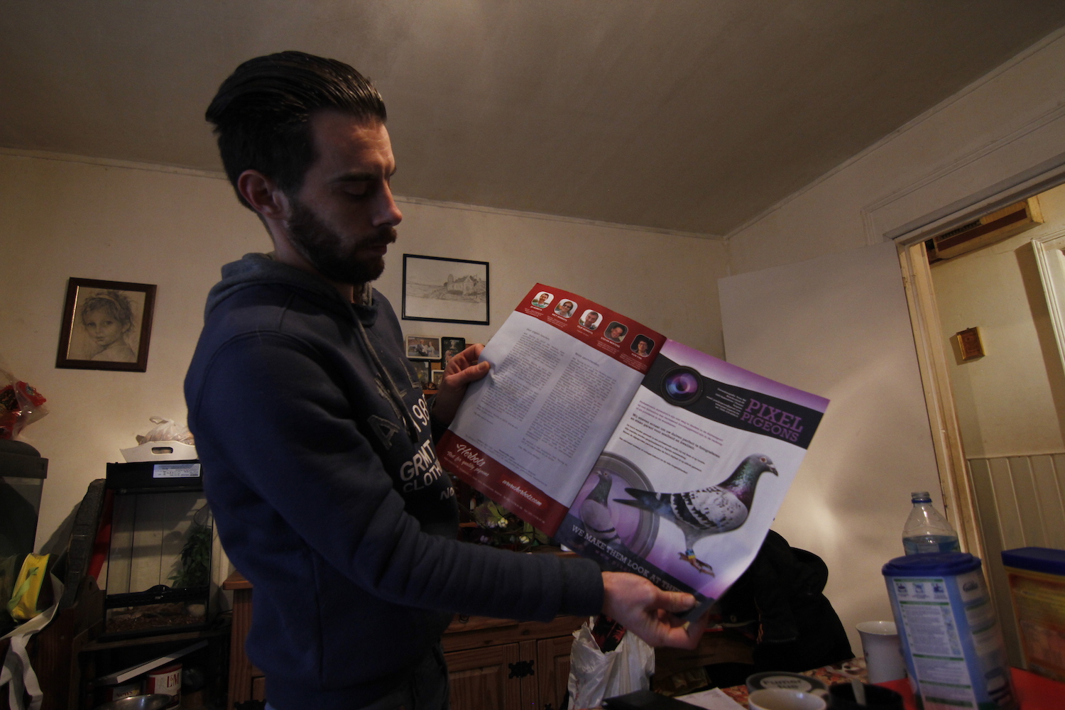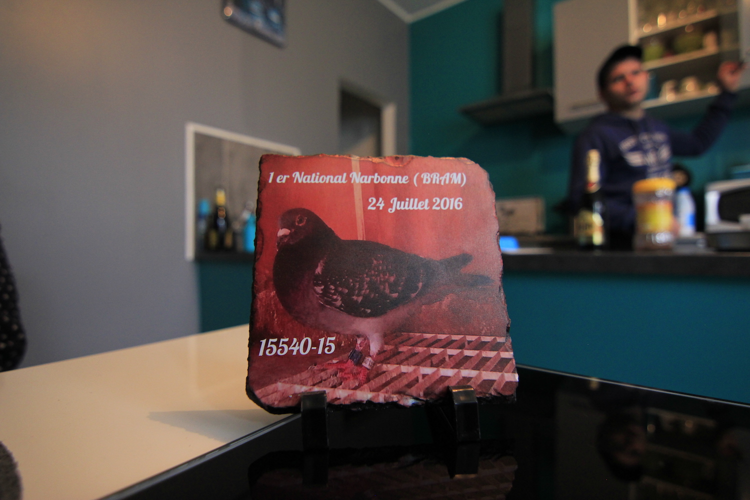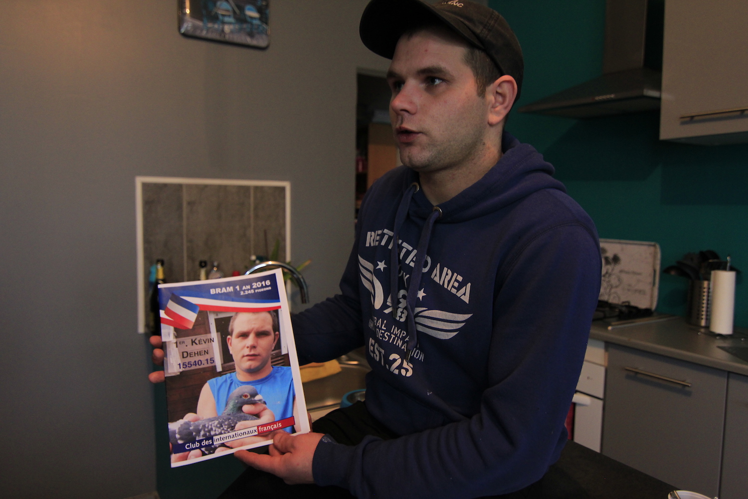 Lui aussi délaisse parfois sa vie de couple, il le sait. « Des femmes, il y en a plein. Un 1er national, il n’y en a qu’un ! », lâche-t-il sans concessions, en attrapant une de ses récompenses, une coupe en verre ornée d’un pigeon en or. Dans son salon traînent quelques-unes de ses plus grandes fiertés. De nature nerveuse et atteint d’un syndrome léger de Gilles de la Tourette, Kevin ne tient pas en place et parle très vite. Lorsqu’il tient un de ses oiseaux en main, il est apaisé et serein.