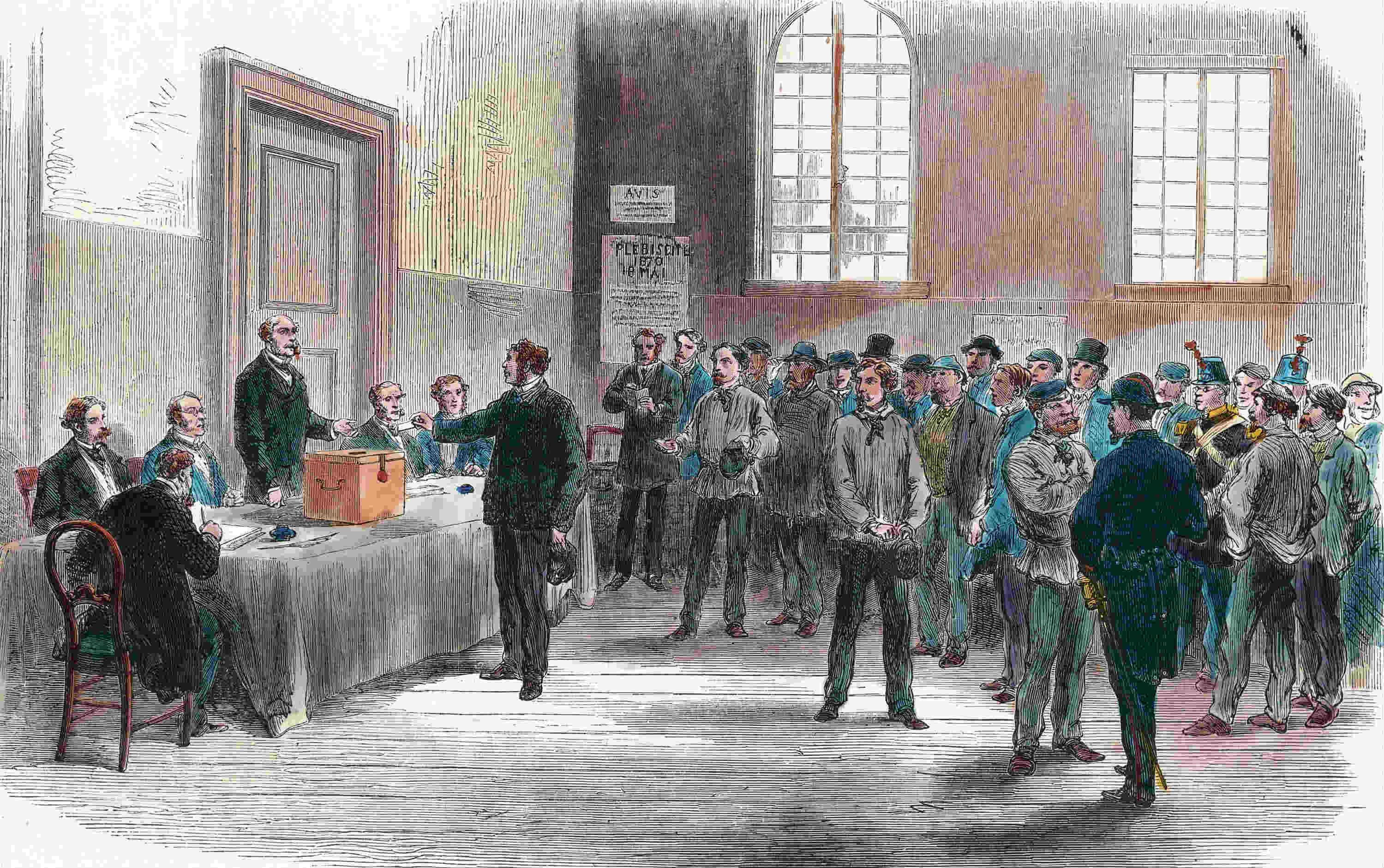 Photo: Bureau de vote dans le Faubourg Saint-Antoine, à Paris, lors du plébiscite de 1870. Crédit : BNF Paris