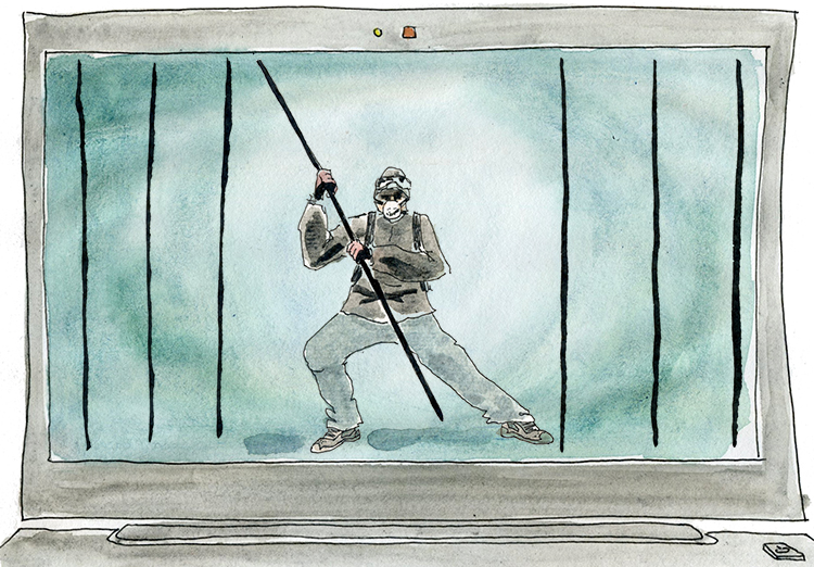 Puis, fusent les questions du procureur sur le caleçon. Il montre une vidéo prise depuis les toits : « Là, on voit la basket de profil. » Le public ne peut se retenir de pouffer, un soutien aux prévenus est expulsé. Pour le procureur, la tenue correspond. « C’est plutôt disconcordant, le contredit Antonin Bernanos. Aucun blouson saisi chez moi ne correspond au k-way de l’agresseur. » C’est la couleur du zip qui diffère.