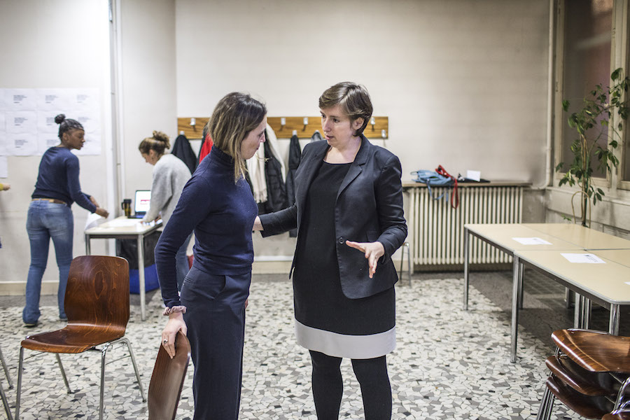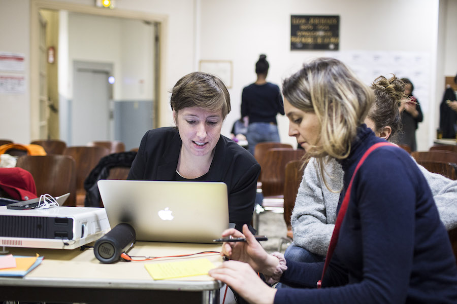Selma se mord la lèvre inférieure en tripotant le col de son pull bleu. La jeune femme écoute attentivement le petit cours introductif de Caroline De Haas devant les 200 militantes venues au lancement de Groupe F, une nouvelle initiative pour lutter contre les violences sexistes et sexuelles. La toute fraîche militante doit prendre la parole pour introduire ce groupe et une pointe de stress se fait sentir. À 27 ans, elle a ses avis sur le féminisme, sans avoir jamais milité dans une structure. « Elle est toute jeune et hyper motivée. Je l’ai rencontrée par hasard sur une conférence à laquelle je participais à Sciences Po. Elle s’est portée volontaire pour le Groupe F, alors on lui a proposé de faire un petit pitch », raconte enthousiaste Caroline De Haas en aparté. Selma prend une grande respiration et se lance, les joues un peu rosies. Juste avant, Caroline lui glisse un mot à l’oreille. « Elle m’a dit “Quoi que tu fasses, tu seras géniale” », raconte quelques jours plus tard, par téléphone, Selma. « Elle fait confiance aux gens avec qui elle travaille, même si nous n’avons pas vraiment fait nos preuves. Elle est à la fois directe et positive, très encourageante. » Devant la salle, Caroline De Haas parle de bienveillance, toujours :