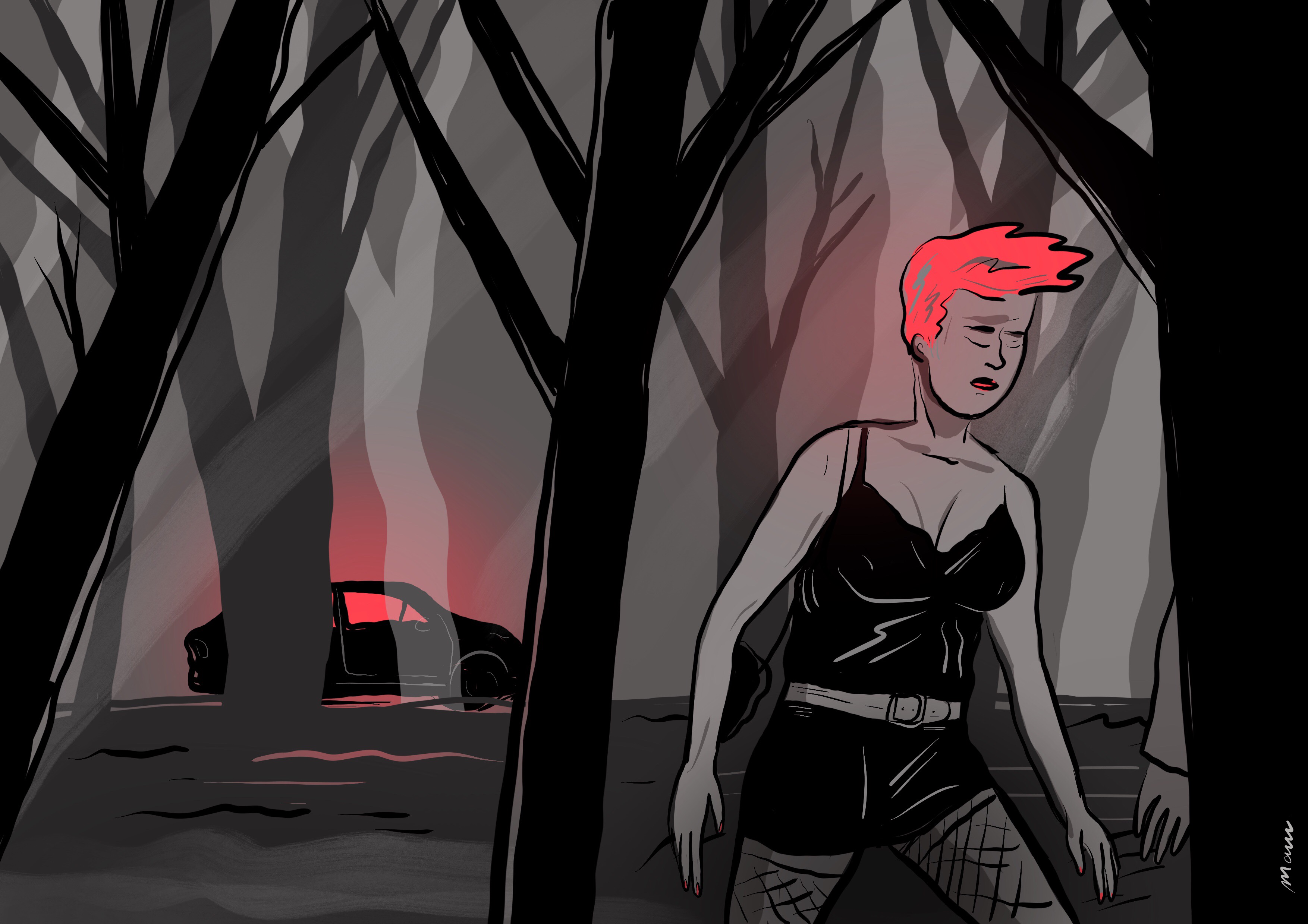 On se captait généralement vers 22h, avant de se rendre dans un bar d’anciens braqueurs, en région parisienne. Ensuite, on partait au charbon. Avant chaque passe, ils me donnaient une capote. Je devais revenir avec l’argent ou la capote. Ça allait vraiment très vite. Les jours les plus rentables étaient le vendredi et le samedi : aussitôt qu’un type avait terminé, un autre arrivait. C’était 50 euros la fellation et 100 euros la passe « totale ». En même temps, tu blablates un peu, tu deviens psychologue pour mecs frustrés. La nuit se terminait quand les gens commençaient à partir au travail, vers 6 ou 7h.