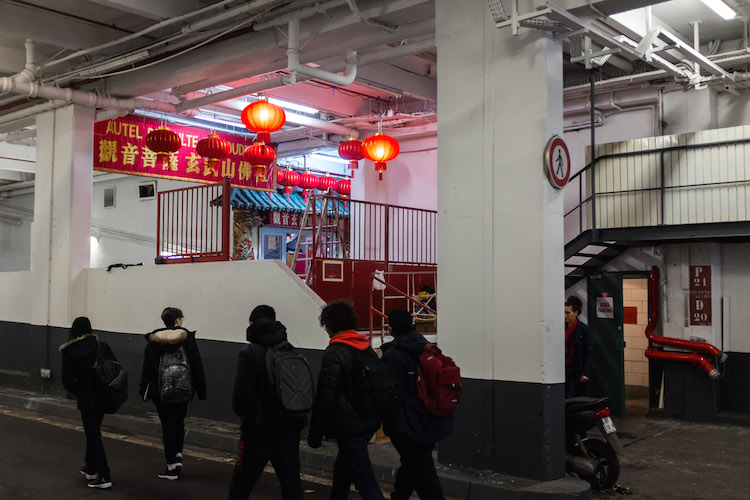L’entrée du temple taoïste a vue directe sur les voitures du parking. Ce lieu de culte appartient à l’Arfoi. « Notre association [créée en 1982] étant la plus ancienne, on est en première et dernière ligne de la parade », fanfaronne François Leganne.