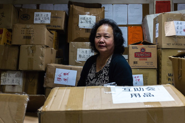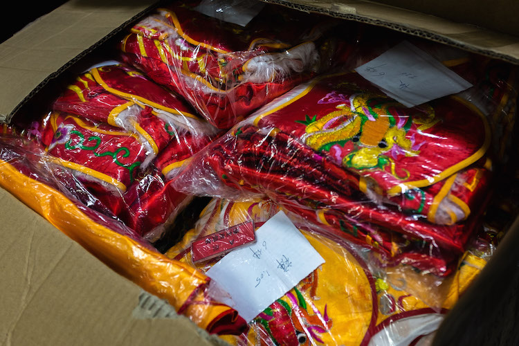 Sur fond de musique, dans les bureaux de l’association – au-dessus du temple – trois vieilles dames s’activent au milieu des tables et des cartons. La salle est littéralement remplie de ces caisses rectangulaires aux sinogrammes chinois. « On trie et étiquette chaque costume pour les confier aux 600 jeunes qui se sont inscrits depuis novembre », se réjouit Suzanne Legalle, avant d’ajouter :