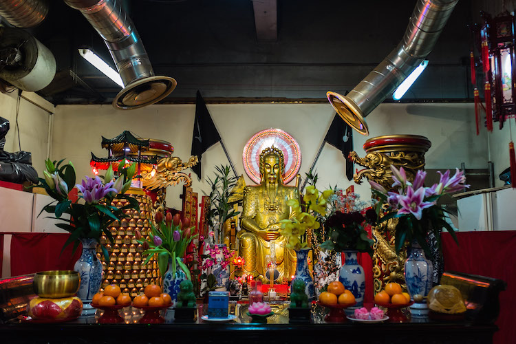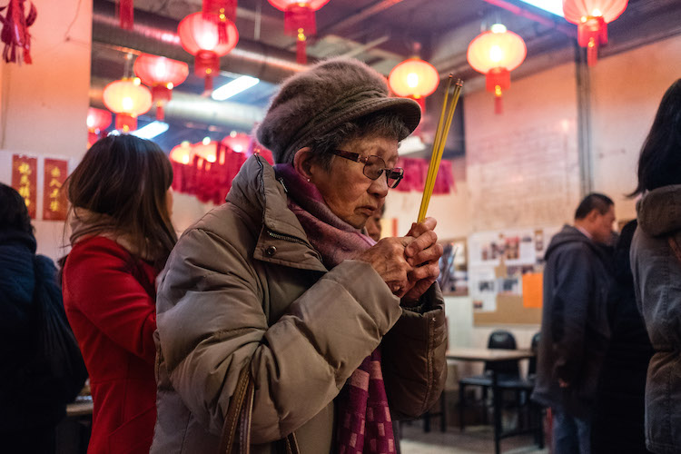 Au matin de la nouvelle lune, le 16 février, premier jour de l’année, le temple est envahi par une forte odeur d’encens. De figures mythiques en figures mythiques, les croyants viennent se recueillir. Tout au long de la journée, on évacue les offrandes vers les cuisines pour laisser la place aux arrivants, les bras chargés de fruits, riz et bidons d’huile.