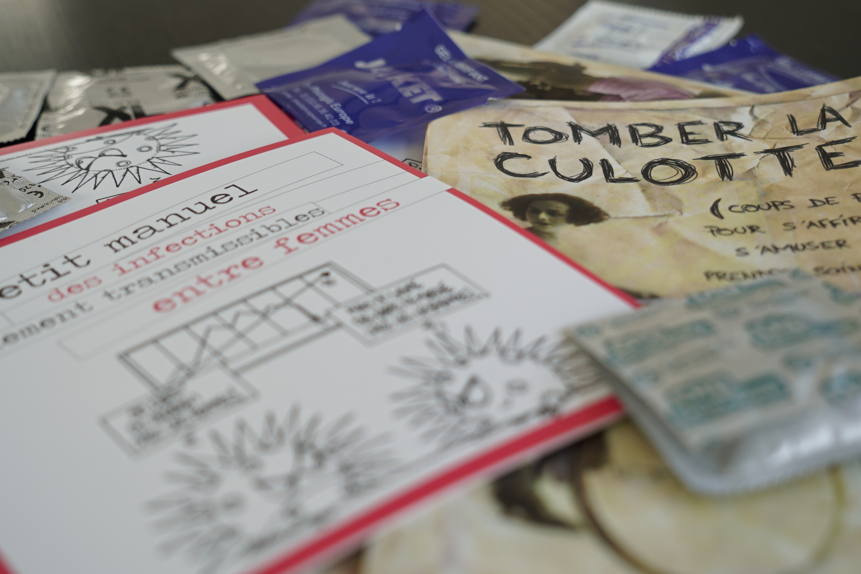 Des assos ont créées des brochures sur la santé sexuelle à destination des lesbiennes. Crédit : Manon Walquan /