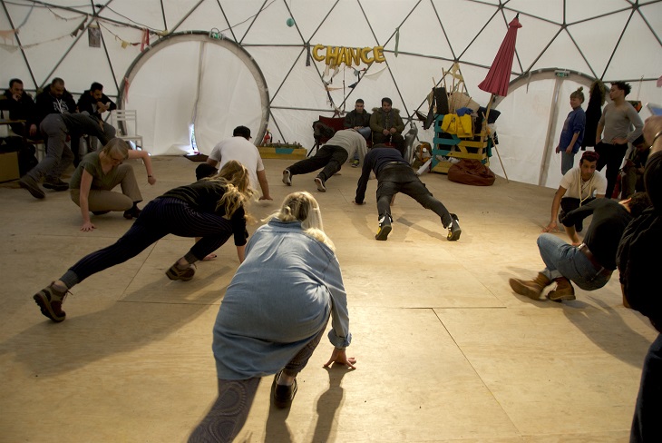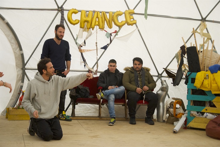 Le Good Chance Theatre a démarré dans la jungle de Calais en septembre 2015. Après le démantèlement de la jungle, la troupe décide de suivre les réfugiés, de retour dans la capitale. Elle installe d’abord son théâtre éphémère Porte d’Aubervilliers, à Paris. Depuis 5 semaines, la bande a rejoint la Porte de la Chapelle, juste à côté de la bulle installée en novembre 2016, par la mairie pour héberger les migrants. L’un des deux fondateurs détaille :