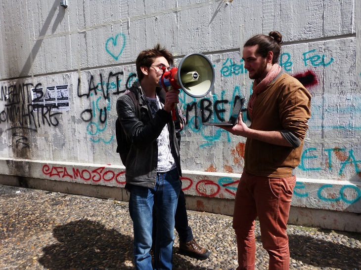 Au delà du fun, l’auto-média sert tout d’abord à renvoyer une autre image du mouvement étudiant. « Je suis choqué par les reportages télé », s’indigne Raphaëlle. Deux semaines plus tôt, le sujet de Quotidien sur les dégradations à caractère antisémite commises dans le local de l’Union des Etudiants Juifs de France, provoque un séisme au sein de la fac. « Le reportage nous a tous bien énervés, ils nous font passer pour des antisémites ! Il fallait qu’on réagisse », relate énergiquement Martin. 24h plus tard, le vendredi 30 mars, il propose de créer l’auto-média de Tolbiac en assemblée générale.