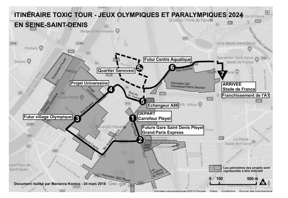 L’itinéraire du Toxic tour, de Pleyel et la Plaine Saulnier.