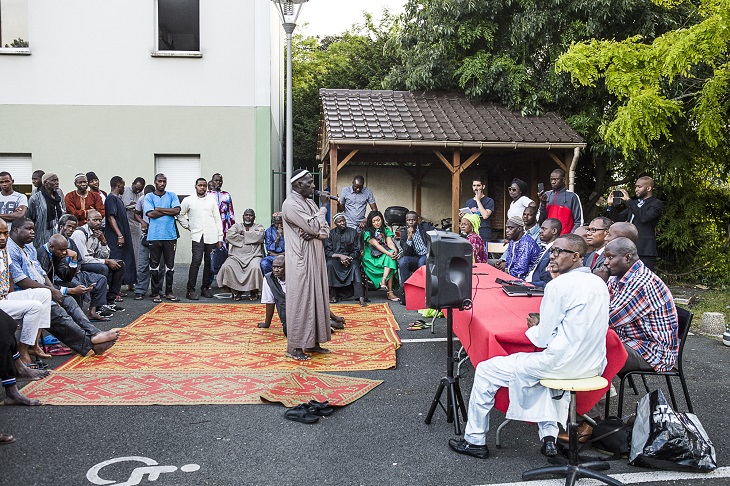 Les hommes venus écouter « Mara » patientent sagement dans la cour de leur foyer de travailleurs immigrés. On est tout à l’est de Paris, au foyer de la porte Dorée. Une grosse soixantaine de bonhommes sont là, tous Maliens. Des vieux, des jeunes. En boubous et tenues traditionnelles pour beaucoup. Aucune femme. Pour la venue de « Mara », les hommes du foyer ont descendu des chaises et des bancs de leur chambre. Ils ont tendu des tapis sur le sol. Quelqu’un a dressé une table, disposé des micros et installé un ampli pour que même ceux du fond puissent entendre. De l’autre côté de la route, la Foire du Trône clignote de rose en crachant « It’s raining men », la version de Geri Halliwell.