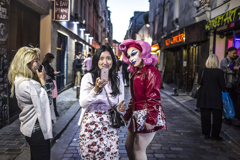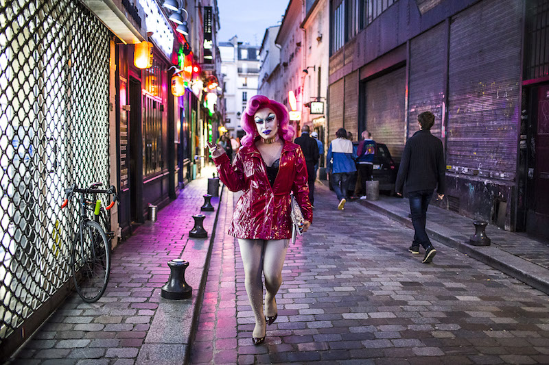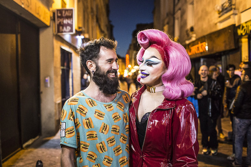 Bastille, 11e arrondissement – Deux mecs se déhanchent perchés sur des talons de 15 centimètres, apprêtés de chevelures flamboyantes blondes et rousses. Hommes le jour, Cookie Kunty et Helvetica Font, leurs noms de scène, deviennent drag-queens la nuit. « Elles sont magnifiques. Elles ressemblent à des poupées », commente Fabien Lesage, 34 ans et précurseur des shows drag parisiens, en terminant sa clope rue de Lappe. Ce soir, c’est lui qui les invite dans le bar le Street Art pour sa soirée JeudiBarré :