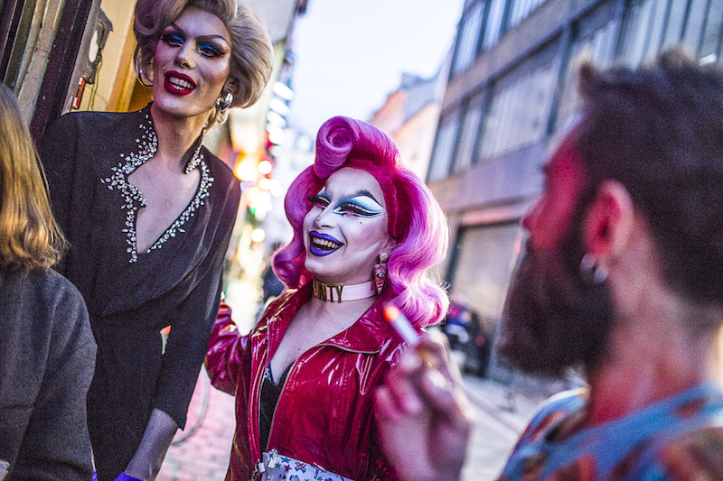 Vêtu d’une chemise bleue à carreaux, Fabien est au fond du bar, penché sur son ordinateur. Il lance les musiques sur lesquelles ses stars vont performer. Il est l’homme de l’ombre, celui qui donne à ces créatures de la nuit l’espace pour s’exprimer. Cookie entre en scène pour un playback de Wannabe des Spice Girls, devant un public en liesse. La foule crie et danse avec la performeuse. « On est accro à ton clit ma chériiiie ! », s’époumone un de ses jeunes fans, entassé sur les autres. Tenues moulantes, paillettes, corsets, talons hauts, rien n’est trop extravagant pour les reines de la nuit. Quant à leurs visages, ils sont couverts de maquillage : fard bleu aux yeux, poudre rose aux joues et rouge aux lèvres. Une préparation longue et laborieuse, parfois même douloureuse, confie Cookie en aparté :