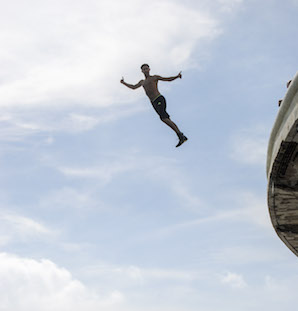 « Putain le con, il a sauté ! ». Le papi des Cévennes, qui croyait se promener tranquillement sur la Corniche Kennedy à Marseille, en reste bouche bée. Un adolescent vient de lui passer devant, en courant, pour plonger onze mètres plus bas dans la mer Méditerranée. Tombé pas si loin des rochers, Emmanuel sort la tête de l’eau. Les yeux piqués par la lumière et le sel, il contemple son point de chute avant de jeter un regard fier vers ses copains, restés plus haut, sur la corniche. Le papi cévenol en est encore tout retourné :