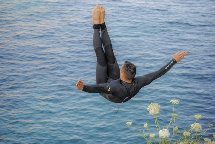 « Le kiff c’est de voler, de quitter le rocher, d’être dans les airs, si en plus t’es au zénith et tu vois ton ombre sur l’eau, là, c’est l’autoroute vers la démence. »