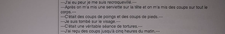 « On m’a mis des coups sur tout le corps (…) c’était une véritable séance de torture. »