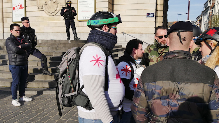 Les manifestants les plus habitués distribuent l’eau bénite du gilet jaune : le sérum physiologique. Partout autour, les street-medics s’activent. Depuis quelques semaines, sept anciens militaires nordistes se sont donnés une nouvelle mission : protéger ceux qui soignent. Ils ont même acheté deux paires de talkies-walkies pour rester en contact permanent avec eux.