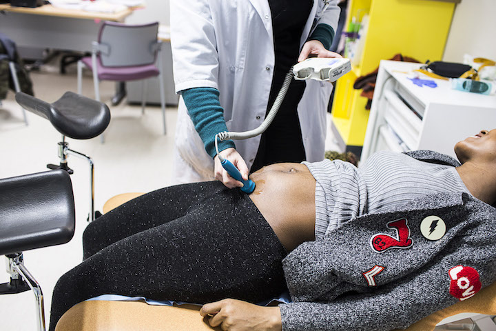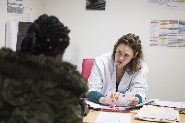 « La multi-précarité augmente le risque de mortalité fœtale et infantile, de prématurité, ainsi que le taux de césariennes », précise le gynécologue-obstétricien Bruno Renevier, en citant les conclusions de l’étude ReMi. Raison pour laquelle Mireille, Sabrina, Fatouma et Aïssa bénéficient d’un double suivi gynéco/sage-femme. Les échographies et prises de sang sont également plus nombreuses. Leur vécu souvent dramatique justifie cette attention particulière. Ainsi la gynécologue-obstétricienne Sarah Abromowicz s’est assurée que Fatouma, originaire de Côte d’Ivoire, n’avait pas été excisée : « Cela peut nécessiter une intervention avant l’accouchement pour éviter de graves déchirures ». Fatouma y a échappé. Mais le virus du VIH l’oblige à prendre un traitement anti-transmission et à consulter un spécialiste.