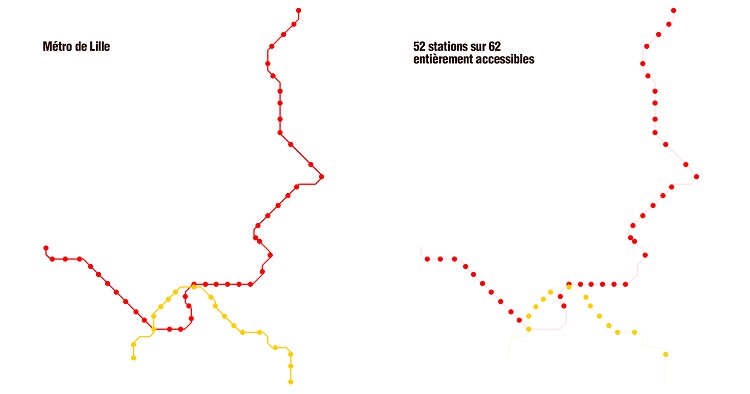Le + : 52 stations sont accessibles en toute autonomie, y compris les handicaps les plus lourds. C’est un joli score pour une ville aussi importante que Lille.