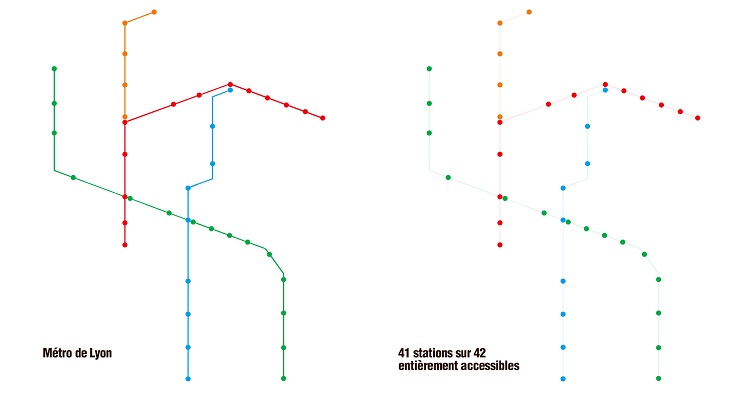 Le + : La majeure partie du réseau lyonnais est accessible, et de nombreux efforts ont été faits pour adapter les transports aux différents handicaps : ascenseurs sonorisés, boutons en relief et en braille…
