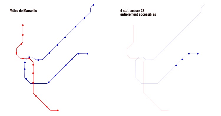 Le mot du maire : Malgré plusieurs relances, la municipalité et la communauté urbaine Marseille Provence Métropole n’ont pas répondu à nos questions. Toutefois, d’après les informations données par la Métropole Aix-Marseille Provence, dans un rapport du 4 février dernier, « la Métropole a approuvé le schéma directeur d’accessibilité ». Des travaux vont donc être effectués pour rendre les stations accessibles. Et « les 36 rames actuelles seront remplacées ». Si le calendrier est tenu, l’intégralité du réseau marseillais devrait être accessible aux PMR en… 2028.