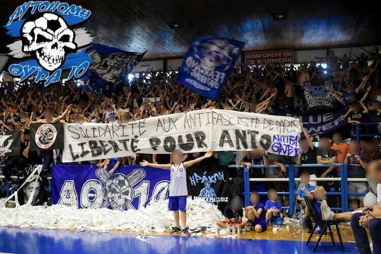 Soutien des supporters antifas du club d'Iraklis à Thessalonique. / Crédits : Action Antifasciste Paris Banlieue