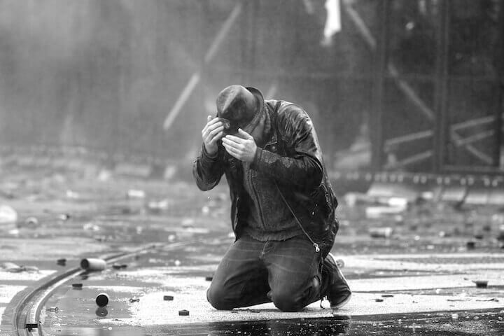 Manifestant se protégeant d'un lanceur d'eau et des gaz lacrymogènes, lors du plus grand rassemblement anti-aéroport. 22 février 2014. / Crédits : Yves Monteil