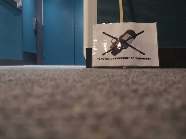 Finalement la voiture arrive à bon port. Les chaises sont déjà installées dans la petite salle de La Carmagnole. Dans un coin, Paul accroche ses portraits des mutilés. Depuis plusieurs mois, le jeune photographe accompagne discrètement le collectif. Ces photos, commencées en école, sont pour lui une manière de soutenir leur combat. Pendant ce temps, Dylan, Laurent et Ève suspendent sur le mur du fond une longue banderole sur laquelle sont imprimés les visages ensanglantés. Peu à peu, les journalistes, mais aussi des soutiens, prennent place face aux 12 mutilés.