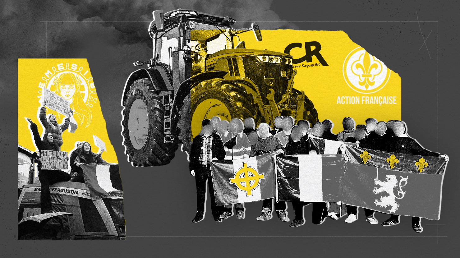 Le mouvement de contestation des agriculteurs, où la CR est souvent à la manœuvre, représente pour l’extrême droite groupusculaire une aubaine et un support médiatique idéal à ses discours. Aux yeux de l’Action française (AF), par exemple, les éleveurs sont ceux qui « façonnent nos campagnes, nos villages, nos paysages, nos traditions et notre identité », explique le mouvement royaliste dans un communiqué publié en décembre 2025. Toute la mouvance fait des paysans les représentants du « pays réel » contre un « pays légal » qui trahirait la France — en résumé, les élites politiques. Une rhétorique entendue dans les manifestations agricoles début 2024 — que les militants d’extrême droite avaient déjà infiltrées — ou lors des Gilets jaunes, où les groupuscules s’étaient fait violemment expulser des manifestations par les antifascistes.