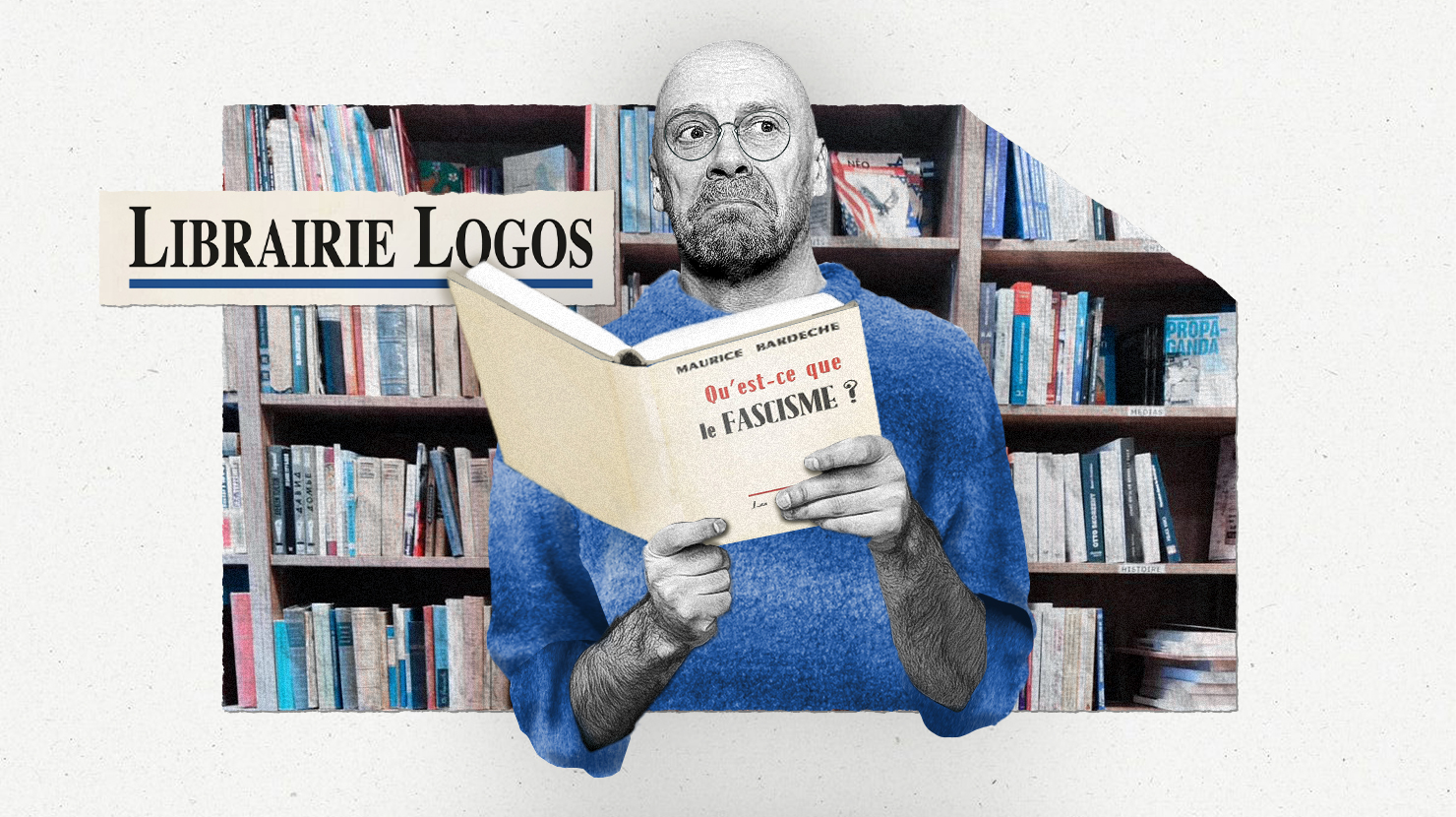 La réécriture des faits est courante chez la librairie Logos. Dans sa boutique à Paris, on trouve par exemple « Nuremberg ou la Terre promise » de Maurice Bardèche — qui se décrivait comme un « écrivain fasciste ». C’est aussi un négationniste condamné pour avoir écrit dans ce livre, à propos de la Shoah, que le gaz utilisé dans les chambres d’extermination était en réalité « destiné à “l’assainissement”, c’est-à-dire à la destruction des poux dont tous les internés se plaignaient ».